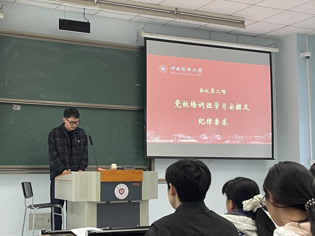 随后,王臻以《坚定理想信念,争做强国先锋复兴栋梁》为题,为全体学员讲了一堂生动的党课。党课紧密结合习近平总书记在党的二十届四中全会、在纪念中国人民抗日战争暨世界反法西斯战争胜利80周年大会上的重要讲话精神,深情讲述了习近平总书记对青年大学生亲切关怀和殷切寄语,分析了当代青年面对的时代背景和重要机遇。王臻勉励同学们把个人的理想奋斗同祖国的前途、民族的命运紧密联系在一起,立足专业学习、练就过硬本领、努力创先争优,奋力书写为中国式现代化挺膺担当、为中国生物医药产业发展贡献的青春篇章。