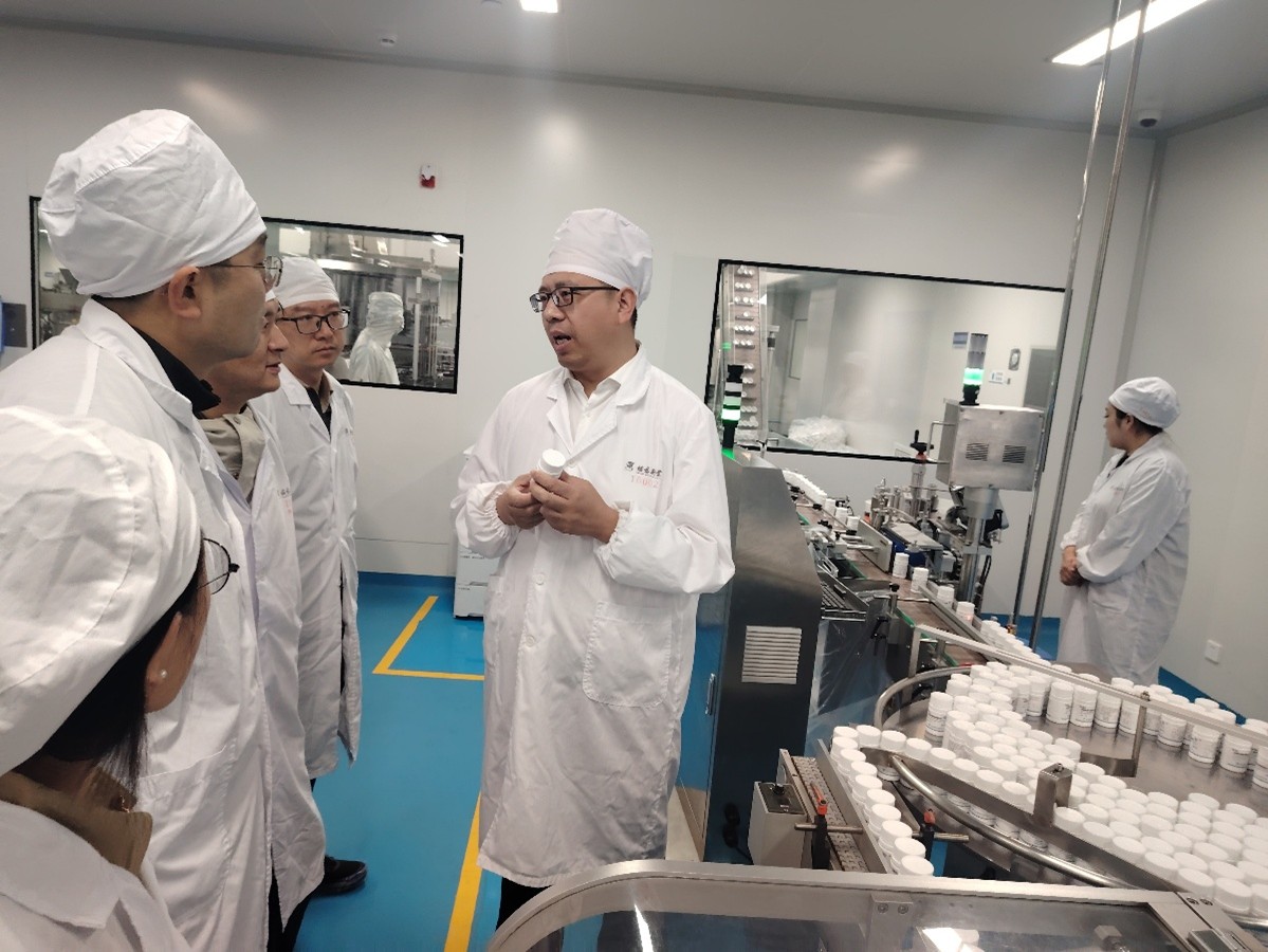 调研团队一行来到浙江诚意药业股份有限公司,深入生物医药企业第一线,听取了赵春建总经理的介绍并考察了盐酸氨基葡萄糖系列、神经系统用药天麻素以及鱼油生产数字化生产线,就海洋产品的开发研究以及海洋药学专业人才培养校企合作进行了充分讨论并初步达成合作意向。