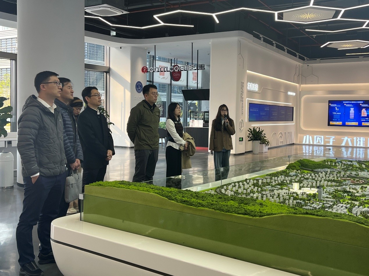随后,调研团队来到温州医科大学,实地考察了中国基因药谷、佰诺创睿CDMO(医药合同研发生产机构)平台以及促成大分子药物与规模化制备全国重点实验室、细胞生长因子药物和蛋白制剂国家工程中心两大平台,药物研究得以走出学校实验室,在药谷进行转化生产,并且投用到医院临床全链条。与温州医科大学药学院党委书记王建波、副院长卫涛以及副院长吴迪,洽谈关于生物制药本科专业建设以及科学研究合作框架方案。