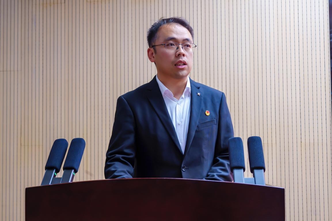 工学院团委书记赵旭代表兄弟学院团委致辞,他表示,期待两院团委在科创项目、校园文化、志愿服务等方面深化务实合作,共同为学校共青团事业高质量发展贡献青春合力。