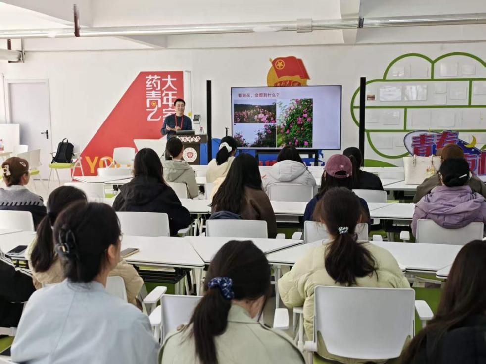 中国药科大学校友、山东花物堂化妆品股份有限公司检测负责人郭沈涛担任主讲嘉宾。郭沈涛校友深耕化妆品检测与研发领域多年,拥有扎实的专业知识和丰富的行业实践经验,本次分享中,他以“从自然繁花到科学美妆”为脉络,以玫瑰花为例,用深入浅出的语言为同学们系统讲解美妆护肤相关知识,从护肤品核心成分解读、不同肤质的护理要点,到美妆产品的科学选购与正确使用,全方位拆解美妆护肤的专业逻辑,助力同学们建立科学、安全、理性的美妆护肤认知。