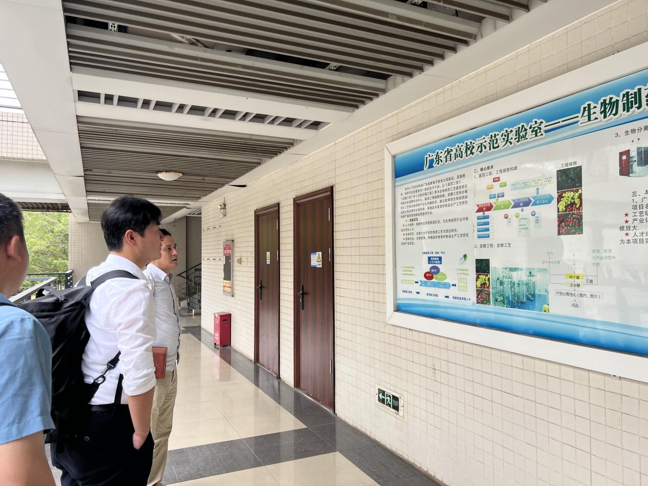 调研组实地走访了广东药科大学生命科学与生物制药学院,重点考察了生物制药综合性工程训练中心及海洋标本馆等实践教学基地。随后,双方在生科楼330室,围绕学科建设、人才培养、产教融合等议题展开深入交流。